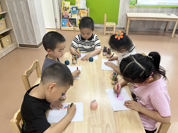 随着课程的深入,孩子们开始以圆为载体,进行美术创作。孩子们在学中玩、玩中学。