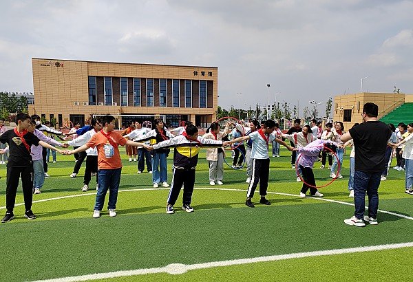 与压力“和解”,和乐观“牵手”。六年级同学在体育老师的带领下进行了“一圈到底”游戏。让同学们放松心情,释放压力。同时,小游戏也能锻炼同学们的交流沟通能力,增强团队合作意识。