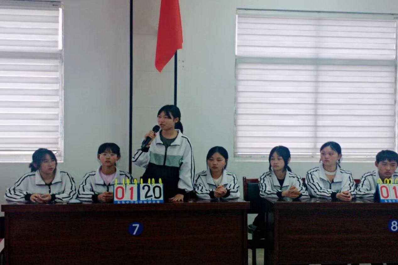 当天下午两点半,朱集中学八支参赛队的选手坐姿整齐,跃跃欲试,脸上充满了朝气和活力,信心满满。随着主持人一声令下比赛开始,现场鸦雀无声,参赛选手们屏住呼吸,闪电般地思考竞赛题,全神贯注地听主持人宣读一道道题目的过程,时刻做好应答准备。在必答题环节,选手们镇定自若,配合默契,沉着应战,充分展现了扎实的理论功底;在抢答题环节,参赛选手反应迅速,准确作答,你追我赶,发挥出色,十分出彩;风险题环节,选手们大胆取舍,沉着应对,精彩纷呈,展现了良好的心理素质,赢得了现场观众阵阵掌声。
