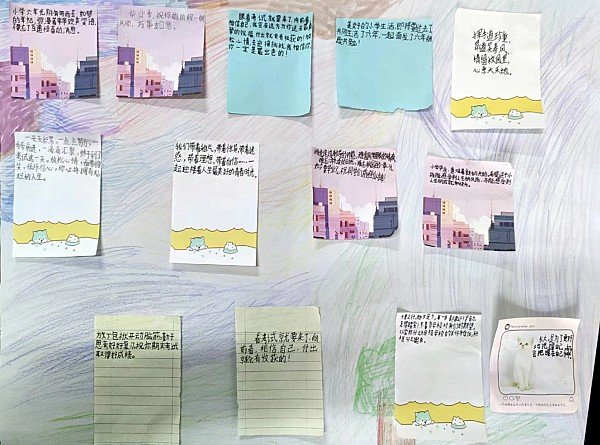活动中,学校组织毕业班学生开展了心理健康教育讲座,心理健康老师希望同学们正确对待心理健康教育,认真听讲,积极参与,平时重视自己的不良情绪,出现心理健康问题要及时向老师和家长寻求帮助。讲座从毕业留言出发,同学们积极参与,留言中有对小学生活的不舍;有对同学的祝福;还有对未来生活的迷茫……讲座的最后,老师要求同学们为自己写一句鼓励语、或画一幅画,让自己更有信心地面对毕业考。