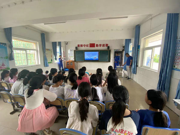 为有效防止学生防溺水事故的发生,增强学生防溺水安全意识和自防自救的能力,敲响防溺水警钟,5月31日下午,合肥市蓝天救援队来到肥东县石塘学校马集校区开展了一场生动而有效的防溺水宣讲活动。本次活动受场地限制,采用主会场加直播的形式,全校区233名学生全部参与。