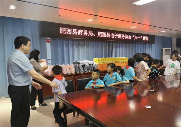 为进一步关心、关爱留守儿童和贫困学生,呵护未成年人健康成长,切实将温暖和关怀送到困难学生心坎上。在“六一儿童节”来临之际,5月30日,肥西县商务局、肥西县商务协会、安徽省方育电器销售有限公司、安徽展翔电子商务有限公司负责人员深入肥西县严店镇中心学校乡村少年宫,走访慰问少年宫留守儿童和家庭困难学生。肥西县商务局副局长周业连、安徽省方育电器销售有限公司、安徽展翔电子商务有限公司主要负责人等参加了活动。