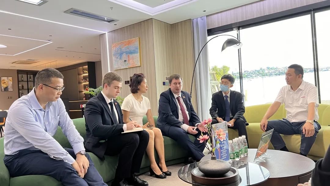 6月1日下午,白俄罗斯驻广州总领事波波夫·安德烈、副领事尼基塔·布德尼克、中白工业园区开发公司中国部总经理侯长青、中山市委外办副主任代美峰 、黄圃镇党委委员黄海燕、黄圃镇工业信息和科技商务局局长冼素连等领导一行莅临荣电集团(中山)3U生态产业园。荣电集团执行董事侯爱明、总裁助理外贸部总经理张志辉进行了接待。