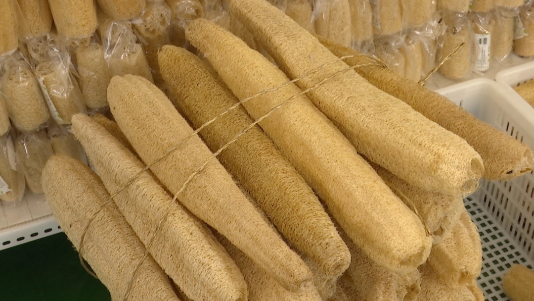 在当地政府的支持下,康峰的企业越做越大,在传统丝瓜络的基础上,他不断加大产品深加工的研究投入。目前,已经开发出厨房、沐浴两大类,二十余种产品,出口主要以欧美、日韩为主,丝瓜园亩产值由原先的一万元左右,提升至两万元,企业年产值也步入千万级。