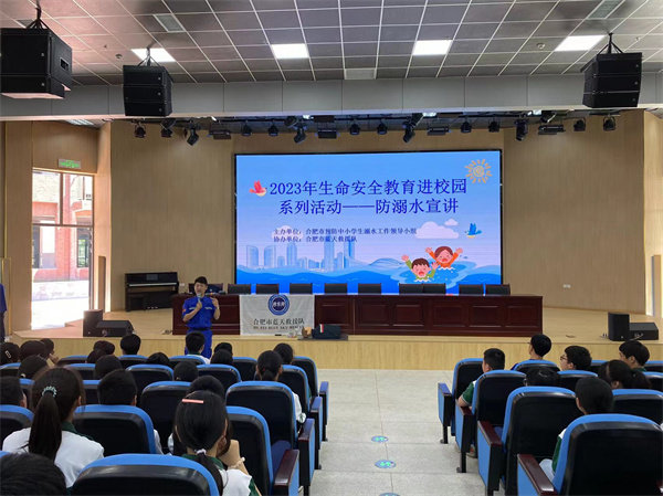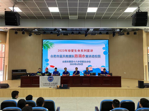 为筑牢学生预防溺水的安全网,让学生掌握必要的防溺水知识技能,避免学生溺水伤亡事故的发生。6月8日上午,合肥市第四十八中学肥东分校邀请合肥市蓝天救援队宣讲团走进校园,为学生们带来一场精彩纷呈而又意义深刻的防溺水知识讲座暨应急救援培训。参加讲座的有该校校长杨威,副校长荚磊、汪元渊,讲座由保卫科负责人王太宏主持。