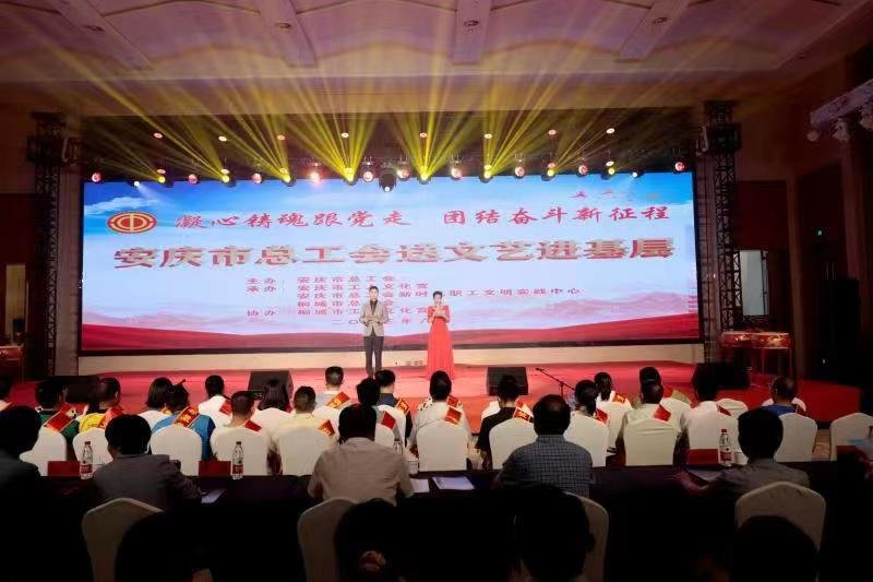 6月12日,由安庆市总工会主办、安庆市工人文化宫、安庆市总工会新时代职工文明实践中心和桐城市总工会承办的“凝心铸魂跟党走 团结奋斗新征程”喜迎全总十八大 安庆市总工会送文艺进基层活动走进了国家历史文化名城安徽桐城。市总工会党组书记、常务副主席王耀武亲临现场观看并讲话,王耀武在讲话中指出,举办“送文艺进基层”活动旨在满足人民群众多样化、多层次的文化需求,与城乡职工共享文化成果,不断追求梦想,推动跨越,奋力推进文化惠民、文化乐民的创新实践。以畅通“最后一公里”的文化服务让群众提了神、暖了心,同时,为推动安庆市经济高质量发展注入工会力量。市总工会班子成员、桐城市人大、市委宣传部等有关领导参加活动。活动现场来自各产业基层工会的劳模、先进工作者和职工代表600多人观看,线上23.25万人收看。