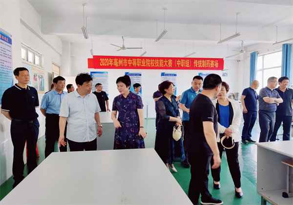 6月12日,河南省南阳市政协副主席华道梅一行到亳州中药科技学校(安徽亳州技师学院)考察职业教育高质量发展的做法和经验。市政协副主席、民革亳州市委主委王时银等领导陪同。