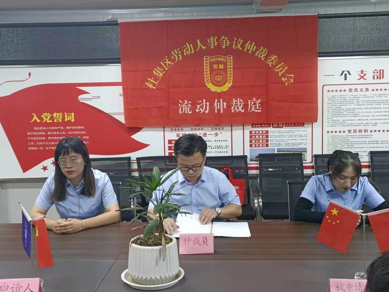 “流动仲裁庭”是杜集区人社局为民办实事、为企优环境的重要举措,本着“用心用情,调解先行,让仲裁庭多跑路,当事人少跑路”的宗旨,通过在争议发生地设立仲裁庭,现场办案,当场现场调解,把“坐等办案”变为“上门问诊”。既免去了工伤劳动者奔波之苦,降低维权成本,又让庭审过程成为普法释法的宣传阵地,达到“处理一案、警示一片、和谐一方”的目的,实现服务群众零距离。