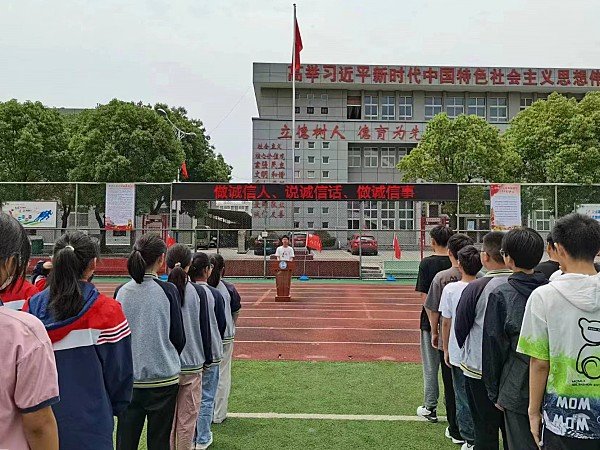 首先,学校政教处利用升旗仪式举行“诚信校园”建设动员会,召开全体学生讲诚信、树诚信、践诚信。同时,利用学校电子屏每天更新有关诚信的名言警句,大力营造“做诚信人、说诚信话、做诚信事”的教育宣传氛围。