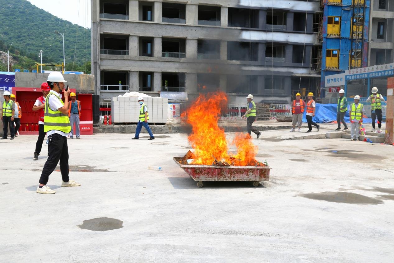 2023年6月是第22个全国“安全生产月”,为强化建筑施工领域应急值守和实战演练,提高在建工地从业人员火灾防控能力和突发事件应变能力,6月15日上午,安巢经开区在花山租赁住房建设项目工地组织开展消防应急演练活动。