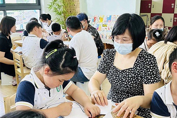 在晨间游戏和早操展示后,各班级活动围绕班本课程主题开展活动,孩子们在老师的引导下,与家长一起装饰水杯,制作扎染作品,孩子们积极参与,大胆尝试,锻炼了动手能力。
