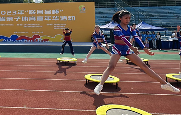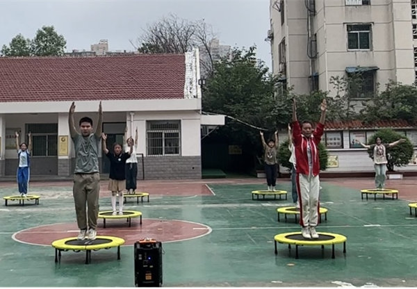蹦床运动作为体操运动的一种,又被称作“空中芭蕾”,对青少年阶段的骨骼发育、运动核心力量有着良好的作用,深受青少年的喜爱。在本次活动过程中,四河“追梦”蹦床队的孩子们通过蹦床技巧展示,在动感音乐的配合下,将每一个动作进行了完美呈现,展现四河学子努力拼搏的追梦精神。