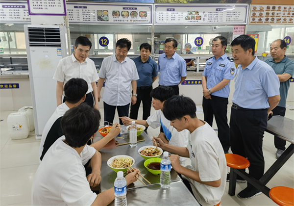 6月16日,亳州副市长、公安局局长薛敬百一行到亳州中药科技学校调研,实地察看文明创建和食品安全情况。