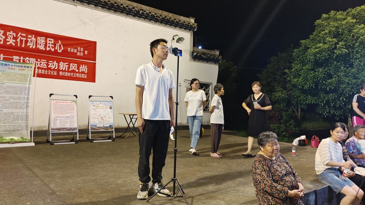 近日,在黄山屯溪区奕棋镇博村文化广场,屯溪区奕棋镇95后乡村推介官王大勇正在直播宣传镇域“老有所学”暖民心行动。这是奕棋镇青年服务乡村振兴一线的一个缩影。