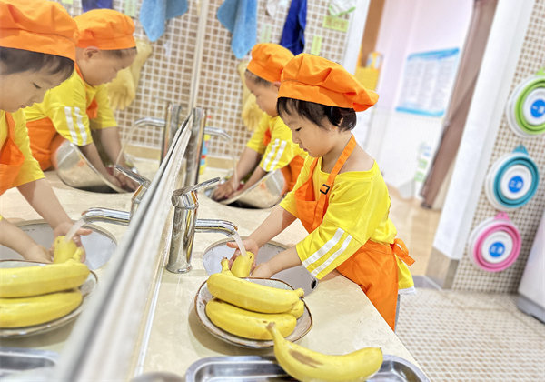“劳动最光荣,劳动最快乐”。吃自助餐之前,可是有很多准备工作要做呢。瞧!为了让小朋友有满满的参与感,各班级老师组织幼儿进行了帮厨小活动,他们多能干啊!铺桌布、装饰餐桌、洗水果等和老师一起体验布置环境、制作美食的乐趣。