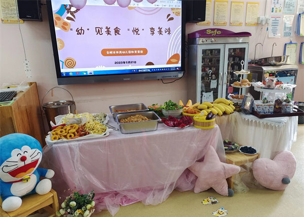 为了让孩子们体验不同的进餐形式,丰富幼儿膳食结构,培养文明进餐礼仪和自主取餐、就餐的良好习惯,感受快乐、轻松、自在的用餐氛围,6月21日,在合肥市双岗幼儿园党支部书记、教育集团总园长高洁的统一部署下,集团四园共同开展了“‘幼’见美食 ‘悦’享美味”自助餐活动。