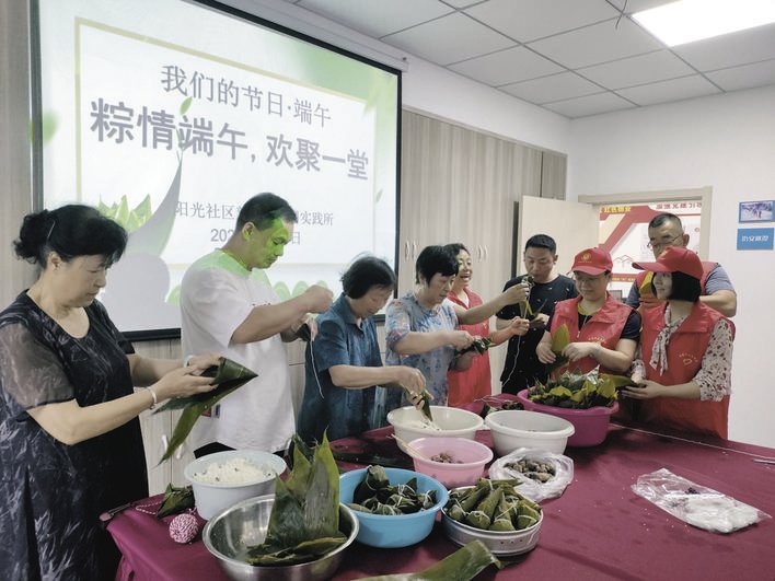 6月19日,铜陵市铜官区阳光社区居民欢聚一堂包粽子。为欢庆端午佳节,该社区组织开展“我们的节日——端午”系列活动,营造出浓厚的节日氛围。 (刘敏 陈敏香)