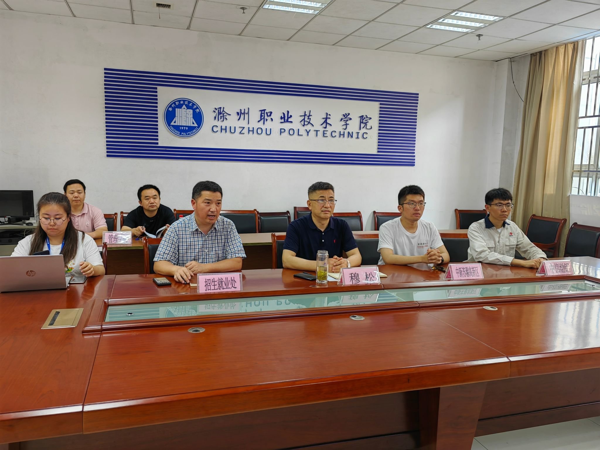 为贯彻落实党中央、国务院“稳就业”“保就业”决策部署,按照教育部就业促进周和“百日冲刺”有关工作要求,抢抓毕业生求职关键期,为学生争取更多的就业机会。滁州职业技术学院于6月20日在综合楼118会议室举办毕业生就业线上招聘宣讲会。校长助理、招生就业处处长穆松,本科教育党支部书记薛天飞,招生就业处副处长王义利,管理学院和招生就业处相关人员参加本次线上招聘会。
