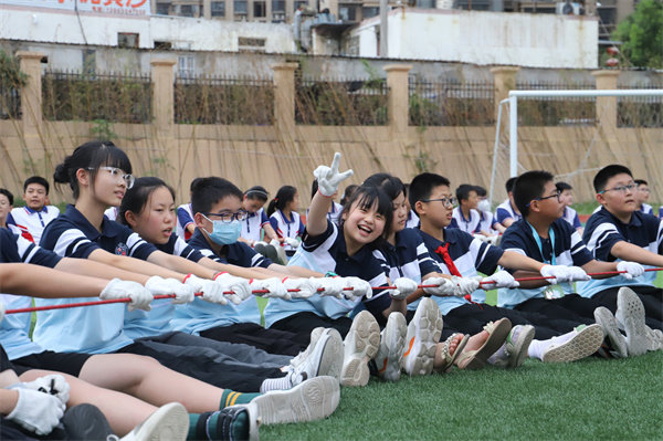 首先,孩子们以班级为单位列队站好,在教官们的带领下通过一系列热身活动打开了身体,并激发了团队热情。接着,孩子们将手上的绳子拧成一股劲,随着教官的口令将绳子上下左右摇动,意味着每个少年都是明天的太阳,闪耀着光芒,而每个人的成长都离不开身边的同伴!通过此项合作活动,孩子们再一次感受到了同伴之间的互相扶持、互相帮助,回想起六年来的点点滴滴,更加懂得了感恩同伴,感恩集体!