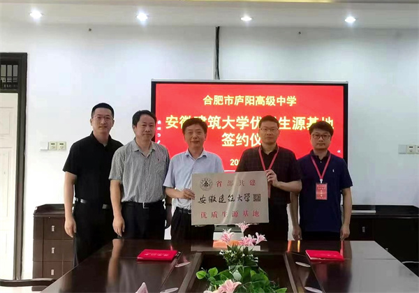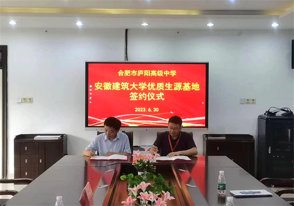 6月30日上午,庐阳高中再次迎来安徽建筑大学马克思主义学院党总支书记李万银到访,并被授予“优质生源基地”称号。庐阳高中党委书记、校长裴劲,副校长杨怀明、武剑出席签约仪式。