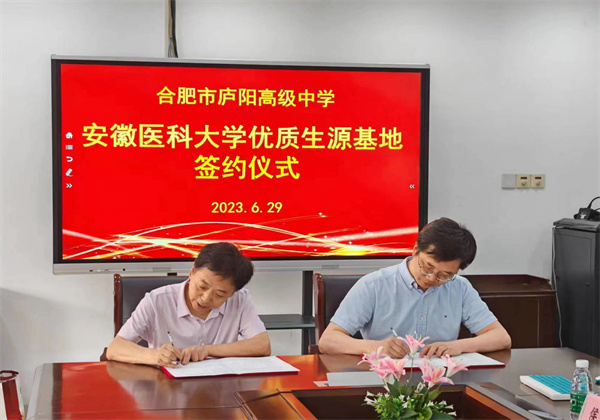 随后,在双方代表的共同见证下,两校签约《优质生源基地合作协议书》,并举行安徽医科大学“优质生源基地”授牌仪式。