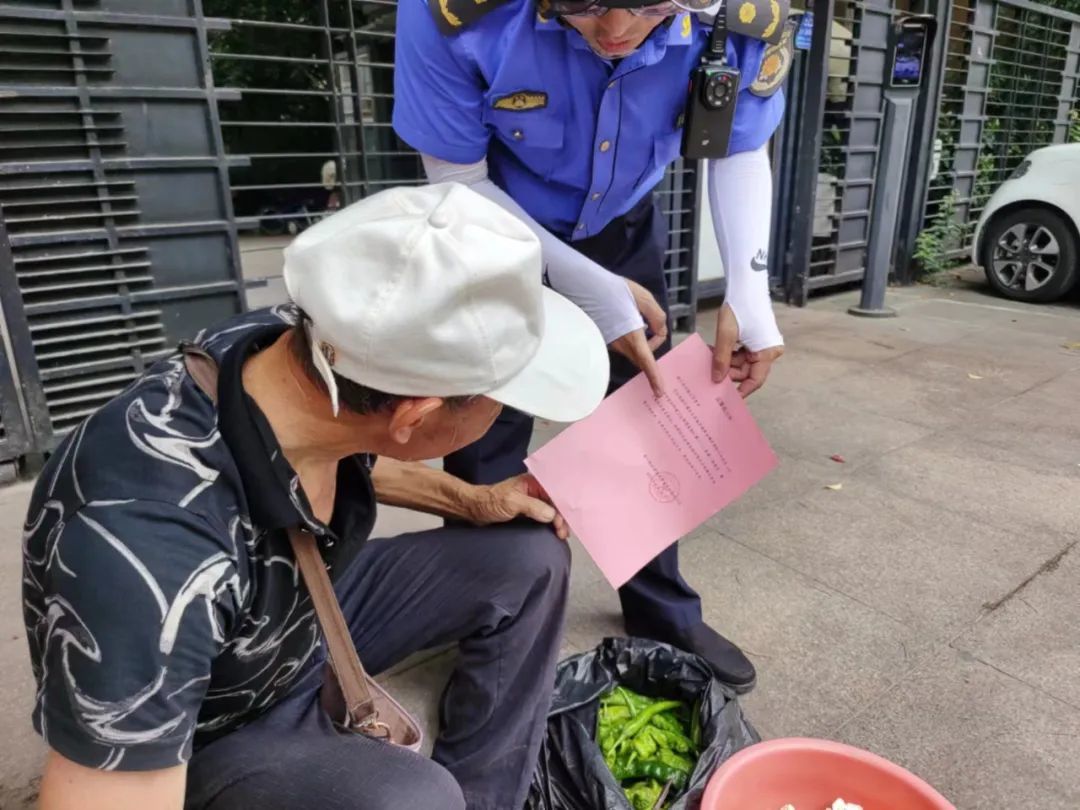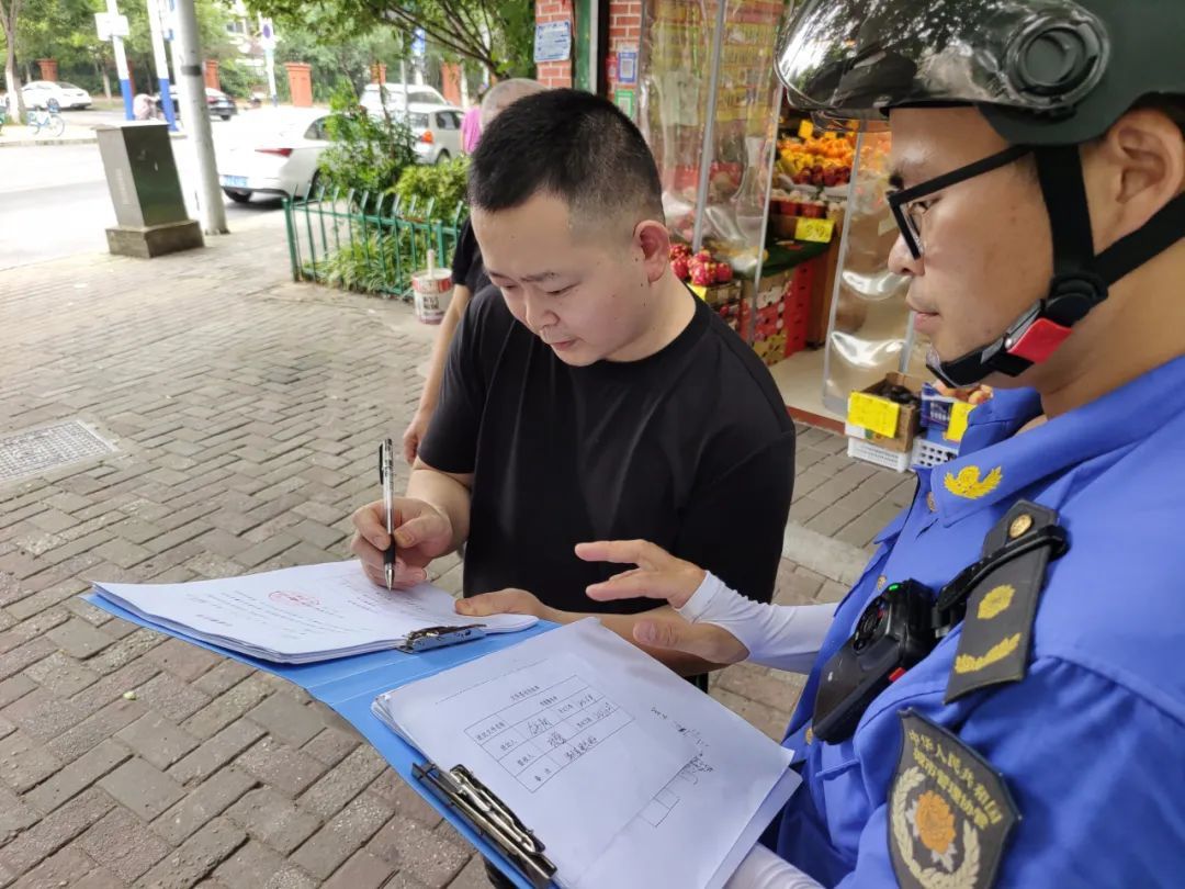 “老板,请把水果挪进店内,放在店外会给市民带来不便。这张警示单是提醒你们及时整改,希望你们配合我们的工作。”6月29日,执法人员巡查时,发现辖区某水果店存在出店经营的行为,执法人员下达郑重警告单并要求店主及时整改。在执法过程中,执法队员对商户进行宣传教育引导,耐心讲解合肥市市容和环境卫生管理条例,以及出店经营对市容环境秩序、交通安全等方面带来的负面影响,引导商户自觉规范经营。待店主将店外水果放回店内后,执法人员离开。