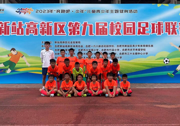 绿茵点亮梦想,激情挥洒青春。6月30日,新站高新区校园足球联赛在合肥一六八新店花园学校落下帷幕,合肥市三十头镇中心小学男子足球队运动员们奋勇拼搏,荣获小学男子甲组三等奖、乙组二等奖的好成绩。胡梓瑞、袁文祥两位同学获得“优秀运动员”称号,学校获得“优秀组织奖”荣誉。