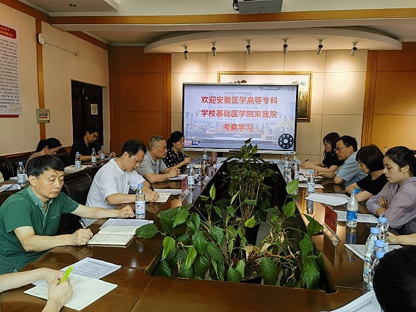 为扎实推进主题教育走深走实,高效推进“两中心一馆”迎评工作,学习借鉴省内医学本科院校在师资培养、实验室建设与管理、教研室建设与管理及科研方面的先进经验与做法,2023年7月3日,安徽医学高等专科学校基础医学院院长吴义春、副院长汪晓庆、党总支副书记安梅带领学院各教研室负责人、骨干教师、实验员等一行17人赴安徽医科大学基础医学院开展主题教育专题调研。
