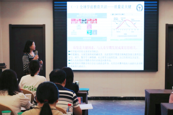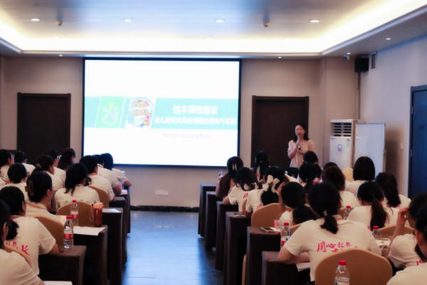 培训中,中共南京市委党校党史党建教研部副教授周贤山做“全面建设社会主义现代化国家的行动纲领”专题讲座,他强调教师要始终牢记为国育人,为党育才的理想信念,扎扎实实做好教育工作;南京师范大学教育科学学院副教授刘颖做“引领质量发展的幼儿园管理”讲座,为幼儿园管理质量发展指明方向,她提出,要将“质量”作为园所发展的生命线,将“管理”作为园所发展的保障线,才能促进幼儿园全面提升办园质量;南京师范大学教育科学学院副教授王玲艳分析了改革开放后中国学前教育发展情况,详细解读了OECD国家学前教育的政策;南京市雨花台区教师发展中心幼教教研室主任王进深度分析《幼儿园保育教育评估指南》,使参培教师认识到实现高质量的幼儿园发展,教师要坚持儿童立场、聚焦教育过程、强化科学评估、注重对幼儿的情感和教育支持;南京市第一幼儿园副园长陈慧菁从园所实际出发,对园本戏剧课程的课程背景、理念、目标、实践等方面进行了深入浅出的解说,为参培教师有效实施园本课程提供了新方向。