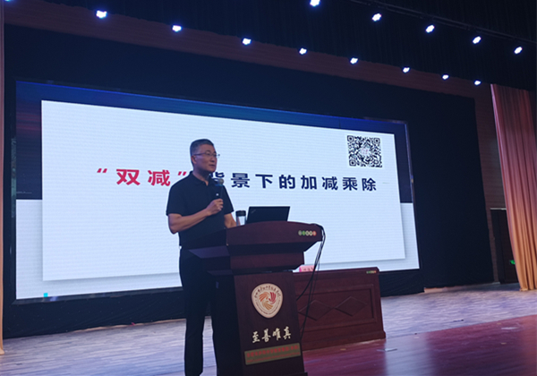 7月6日上午,合肥市教科院叶传平院长为学校教师带来了《双减背景下的加减乘除》的讲座。叶传平深入浅出的解读了双减政策背景下教育教学的“加减乘除”,为教师们提供了更具针对性的教学策略和方法,助力教师们提高教学实效。