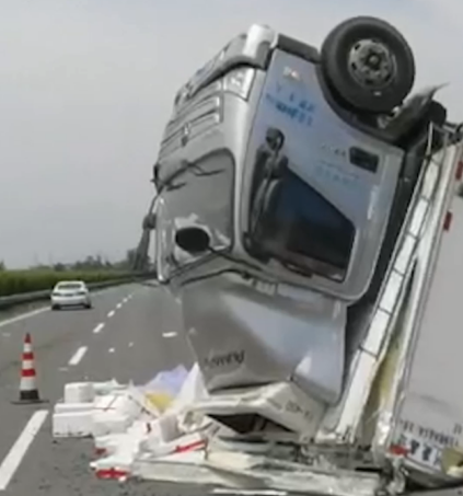 看到一辆大货车侧翻