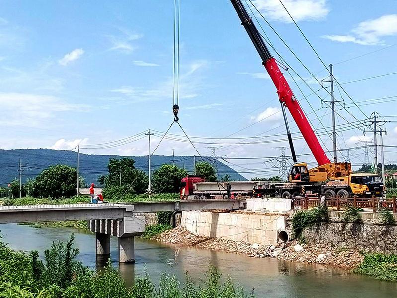 一河之隔,两岸村民出行极其不便,石坡桥的建设将有效解决村民通行难题。该桥长36.4米,宽10米,总投资约195万元,于今年4月正式开工,预计8月底竣工。