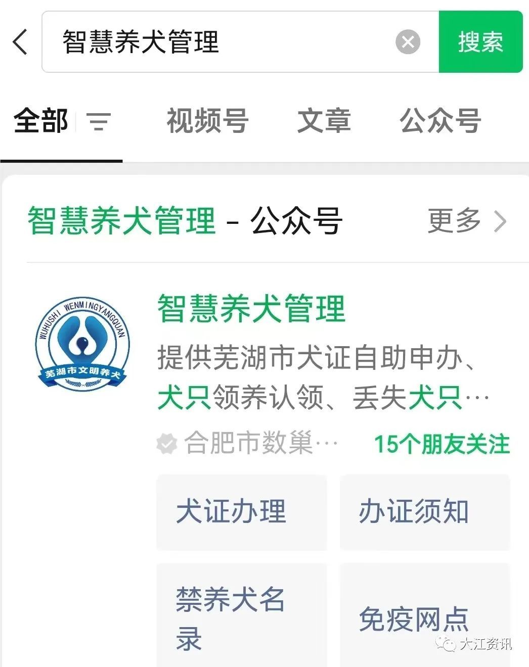 通过“智慧养犬管理”微信公众号-业务办理-犬证办理板块、“平安芜湖”微信公众号-办事指南-智慧养犬管理板块或者皖事通APP-芜湖便民养犬服务板块自主申请提交办证申请及材料。