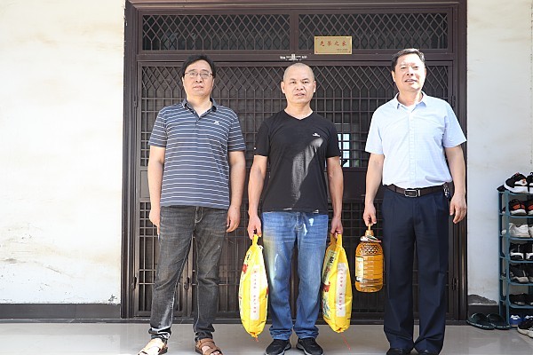 武警中队慰问结束后,校党总支副书记周承一行又来到学校退伍安置军人徐忠勇家中进行慰问,并送上米、油等慰问品。