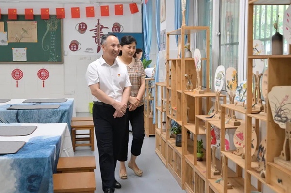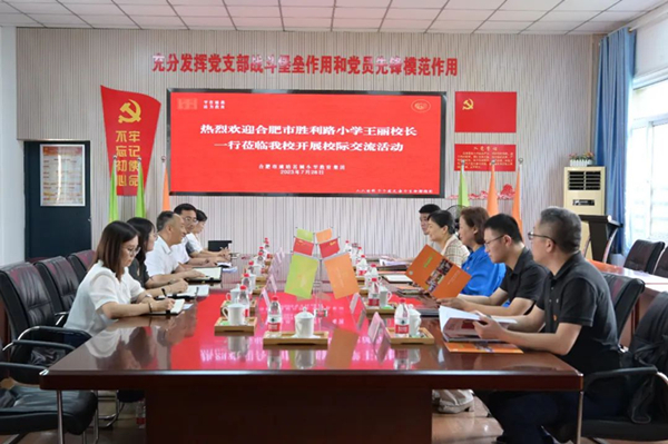 7月28日上午,合肥市胜利路小学党支部书记、校长王丽一行来到合肥市琥珀名城小学教育集团开展校际交流研讨活动,学校党总支书记、校长崔世峰及相关部门负责人陪同。