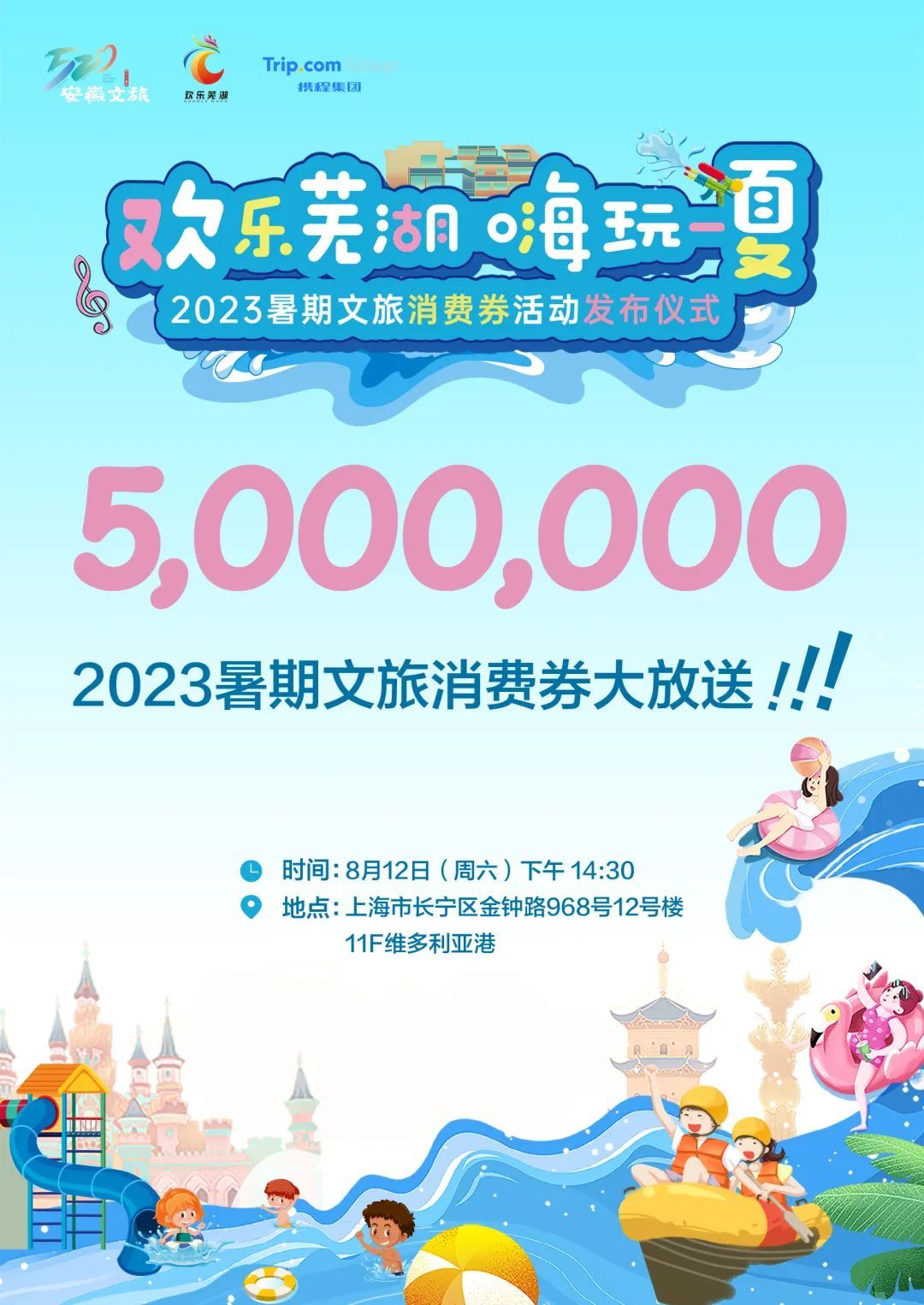 8月12日下午,由芜湖市文化和旅游局携手携程集团举办的“欢乐芜湖 嗨玩一夏”2023暑期文旅消费券活动发布仪式将在携程集团上海总部启动。