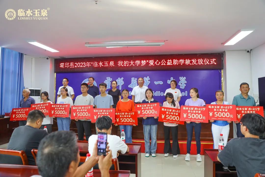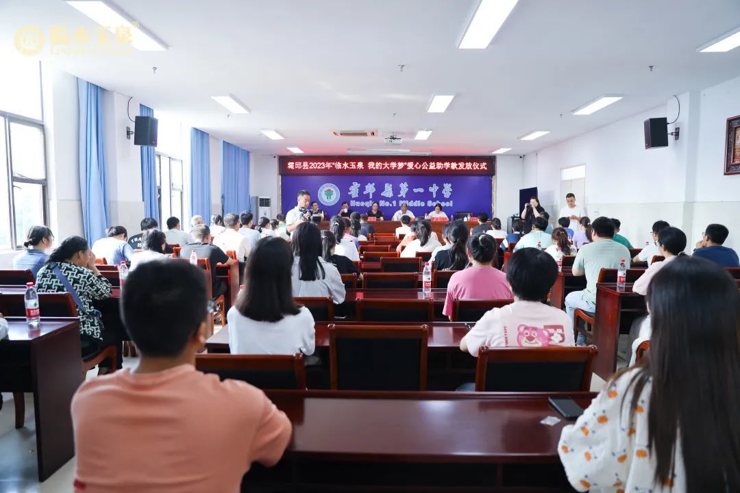十年树木,百年树人。自2019年启动以来, “临水玉泉•我的大学梦”百万公益助学计划已帮助数百位霍邱优秀学子圆梦大学,帮助数百个困难家庭减轻负担。2023年7月,安徽临水酒业有限公司再次通过安徽省青少年发展基金会“安徽希望工程·苏明娟助学基金”捐赠25万元(由中华慈善总会金六福九九爱心基金支持),支持“安徽希望工程爱心圆梦大学”助学行动,继续为霍邱优秀学子们梦圆大学。霍邱县政协副主席徐丽在仪式发表重要讲话,她表达了对优秀学子的祝福,也对临水玉泉的慷慨之举表示感谢,更希望同学们在迈入大学的课堂后,努力学习,希冀大好青年们未来学有所成能够在国家发展中发挥作用,用所学回报祖国,回报家乡。