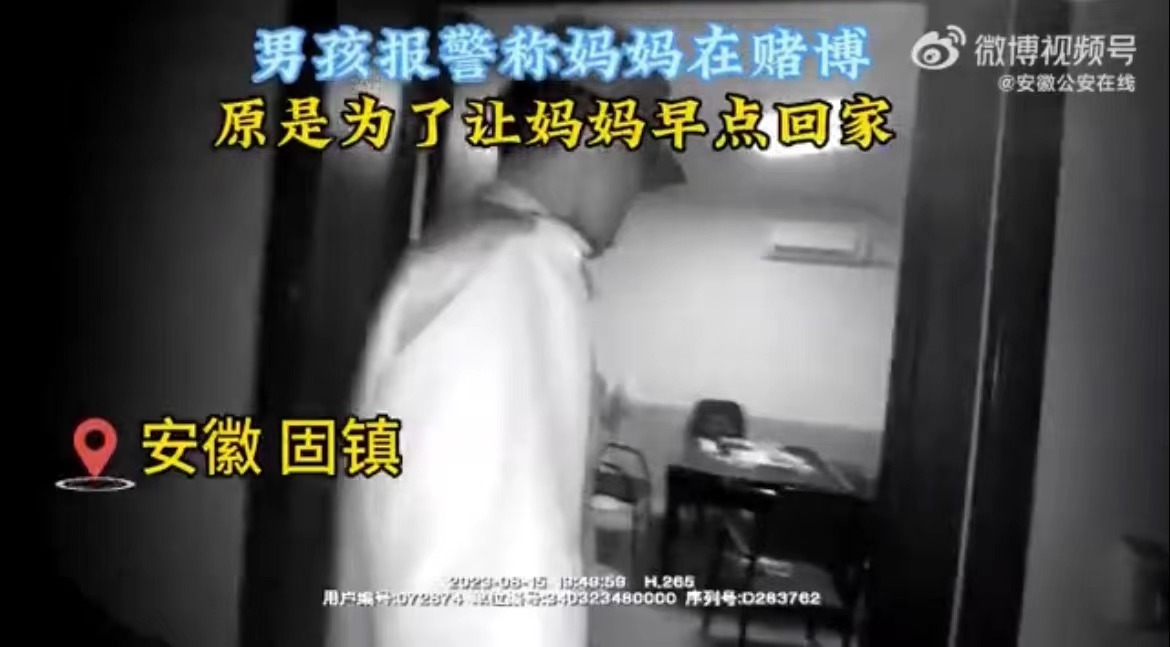 15日晚,蚌埠市固镇县连城派出所接到一个9岁男孩报警称妈妈在聚众赌博。原来是小男孩想让跟朋友打麻将娱乐的妈妈早点回家。希望每个父母都能用心陪伴孩子的童年。