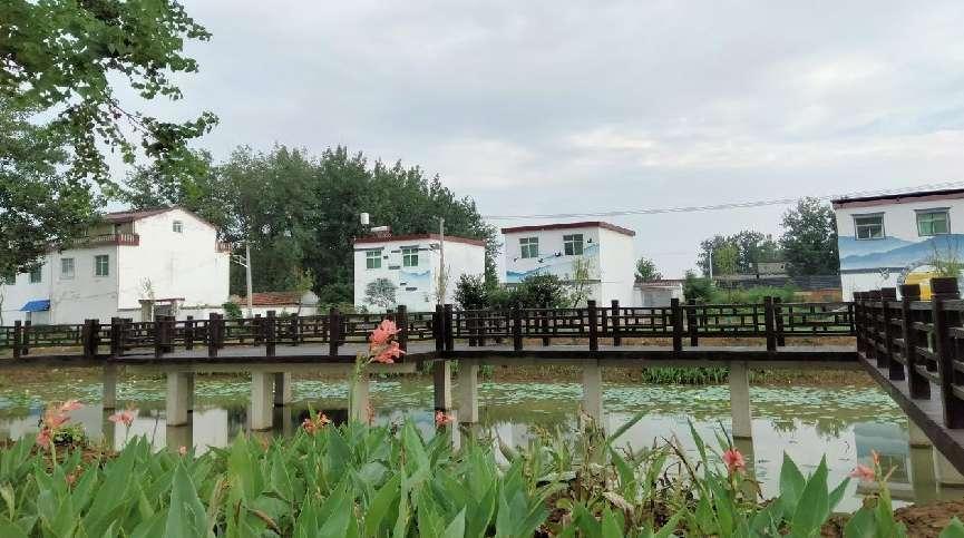 运动广场南侧原有一个废弃的沟塘,垃圾满坑,杂草丛生,在美丽乡村建设中,村里对沟塘进行了改造,如今已是塘水清澈、荷花满池。“水里我们种上了荷花,岸边栽植了美人蕉,水面上安装了步行长廊,适合带小孩和喜欢散步的村民。”王庄镇简马村党支部书记陆开花介绍,“村民很支持,都愿意把乡村建设好,让家门口更美丽。”