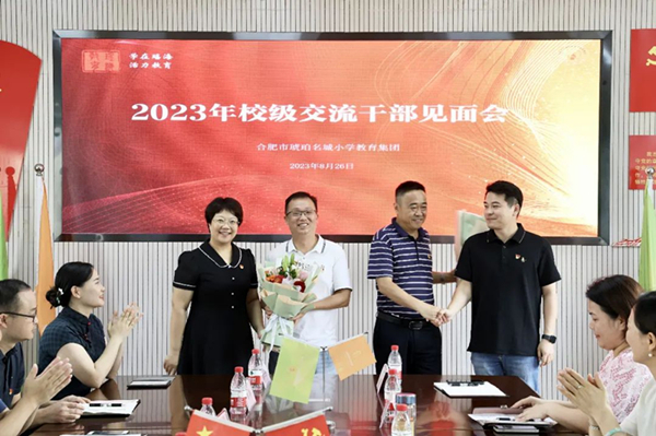 学校党总支副书记、副校长王世茹致欢迎词,热忱欢迎邢志宝和邓俊两位副校长倾情加盟琥珀名城小学教育集团大家庭,助推集团高质量发展。两位交流干部分别表态发言。党总支委员、副校长耿晨、后勤保障中心主任龚臻作表态发言。学校党总支书记、校长崔世峰在作表态发言及集体交心谈话说,既要当好领航员,也要做好服务员,同心同德,向下扎根,同向同行,向上生长。不忘初心、不辱使命、不懈奋斗,为擦亮“学在瑶海 活力教育”品牌贡献智慧和力量。