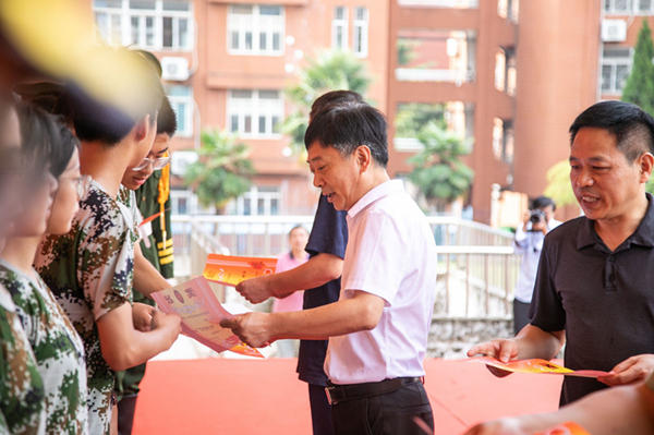 庐阳高中党委书记、校长裴劲作总结致辞。他首先对辛勤工作、无私奉献的教师和教官表示慰问,对关心和支持学校发展的家长和社会各界表示感谢,对高一新生精彩的汇报展示表示祝贺。同时,他希望同学们把军训期间养成的良好品德和作风带到今后的学习中,以铁的纪律来约束自己的行为习惯,以钢的意志来支撑自己的高中学习,不断进步、再创佳绩!(图文/苗博 余瑞)