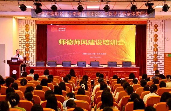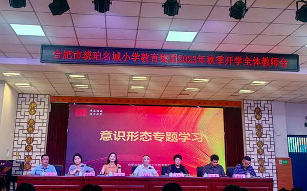 真学笃行迭代升级,实干担当优化进阶。8月29日上午,合肥市琥珀名城小学教育集团召开2023年秋季开学全体教师会。三个校区全体教师参加会议,会议由学校党总支委员、副校长、明皇路小学负责人耿晨主持。本次会议是理论学习会、工作部署会、师德培训会三会合一,科学安排、有序高效,开出了新风貌,开出了新气象。