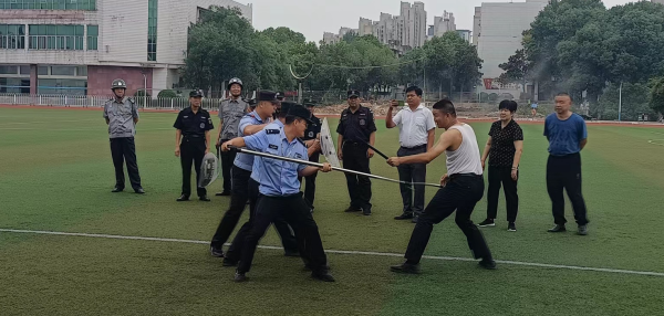 培训从校园安防“八大件”如何正确使用开始,要求所有校园专职保安员务必掌握,做到熟练操作。在操场上,保安队员整齐列队,派出所教官取出防护盾牌、长棍、钢叉、警棍等校园保安值勤常用防护器材,边演练,边讲解。培训内容针对性强,既有理论,也有实际操作,力求实效,学以致用。