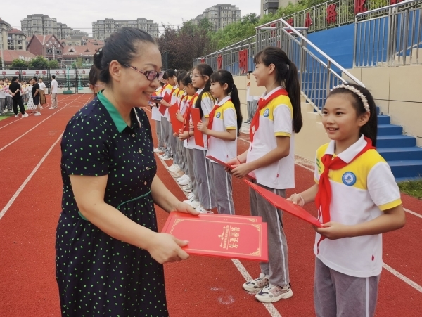 活动中,校领导还为在上一学期中参加学校体育艺术比赛的学生颁发荣誉证书,他们分别是获得滁州市舞蹈大赛一等奖、滁州市女子足球冠军、滁州市羽毛球团体一等奖的优秀学生,这些成绩的获得离不开老师的辛苦付出,更离不开他们的精彩表现。