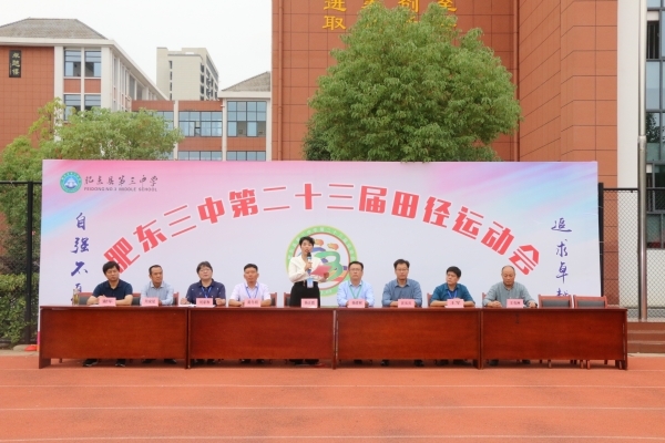 庄严的升旗仪式后,肥东三中校长杨正霞、党委委员、副校长、古河路校区执行校长汪长兵、梁园路校区执行校长周义华致开幕词。他们希望每位运动员赛前做好准备,遵守规则,服从裁判,发扬“用心交融,互相包容”的亚运精神;希望全体裁判员、工作人员忠于职守,树立服务意识,为各项竞赛创造良好的工作氛围;更希望全体师生讲秩序、讲公德、讲卫生,充分体现文明有序的良好行为习惯。