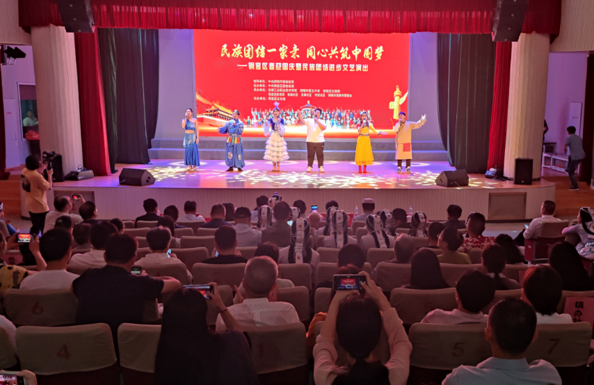 9月26日下午,铜陵市铜官区委统战部联合区文旅局、区教育局,安徽工业职业技术学院、铜陵市第五中学及有关镇办社区等,在区文化馆举办“民族团结一家亲 同心共筑中国梦”文艺演出活动,与各民族群众一起喜迎中秋佳节,庆祝祖国74周年华诞。铜陵市委统战部副部长、市民宗局局长章坤,铜官区委常委、宣传部部长刘文俊参加活动。