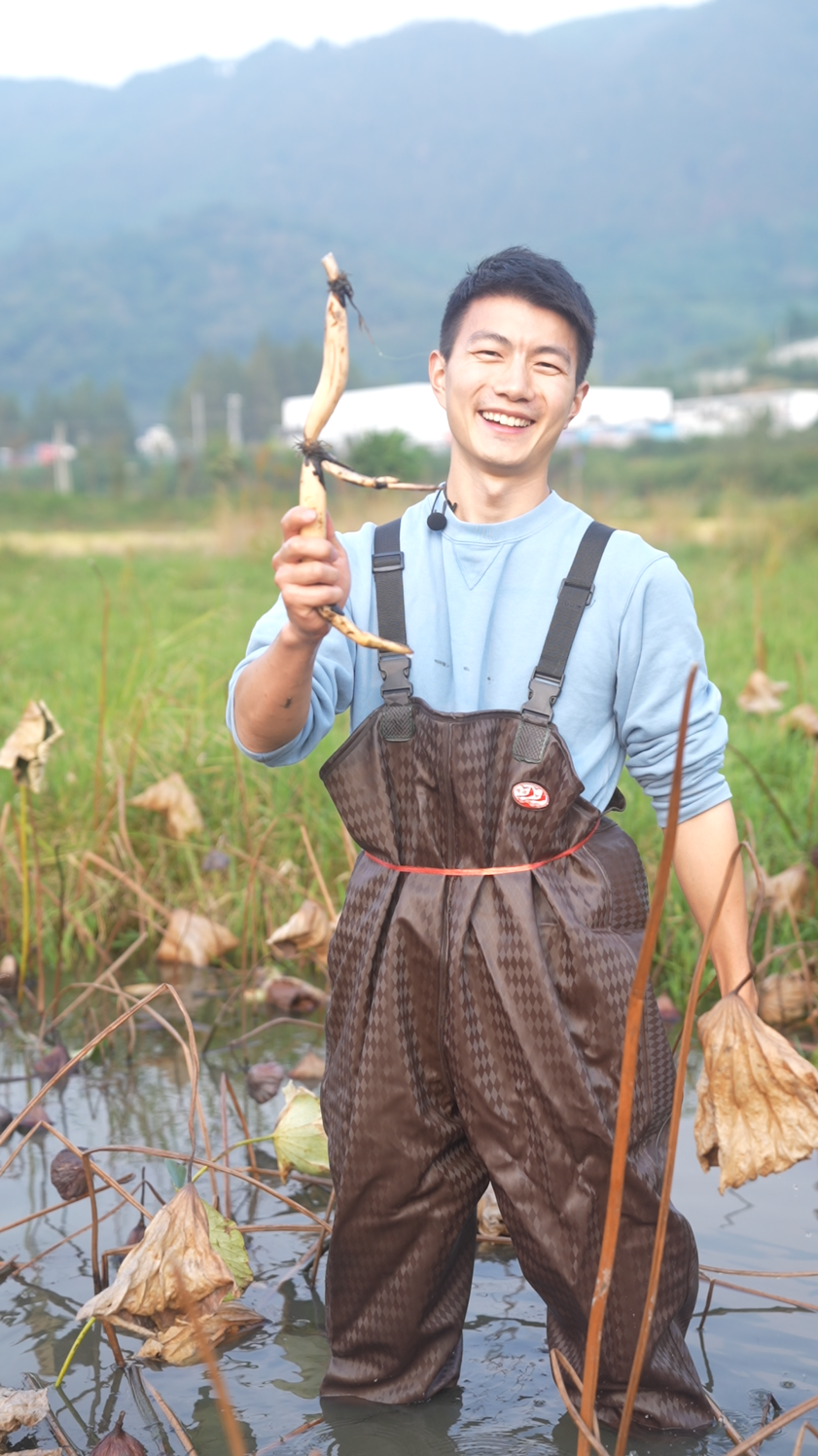 在五丰源基地,汪星宇和团队一起收割稻谷、采莲藕、做木榨油,记录有机环保的耕作方式,记录当地淳朴的村民。 聊起此行收获,汪星宇还沉浸在拍摄带来的快乐中,他虽然从小生活在上海郊区南汇大团,但是对于农耕的技巧,还是觉得异常新鲜。汪星宇自嘲的介绍此次拍摄细节,“ 在我们的视频当中会有很多我们出丑出糗的这些段落,希望大家也多包容一点,我自己来这边体验还是挺特别的。”