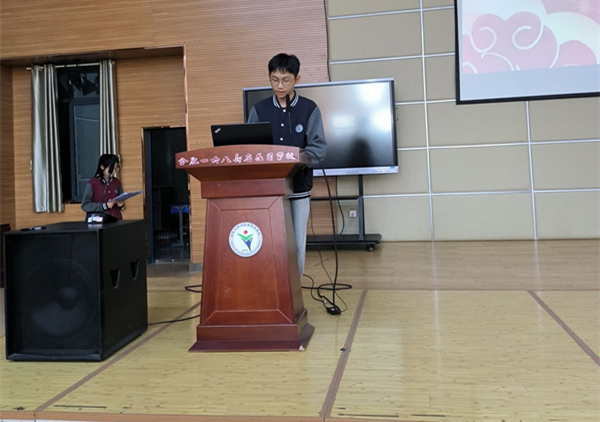 会议第一项,由八13班王文昊、八4班高忆莲作为优秀学生代表上台发言,与同学们分享了自己的学习心得和方法,并表达了对老师们辛勤付出的感激之情。