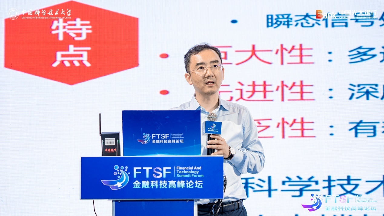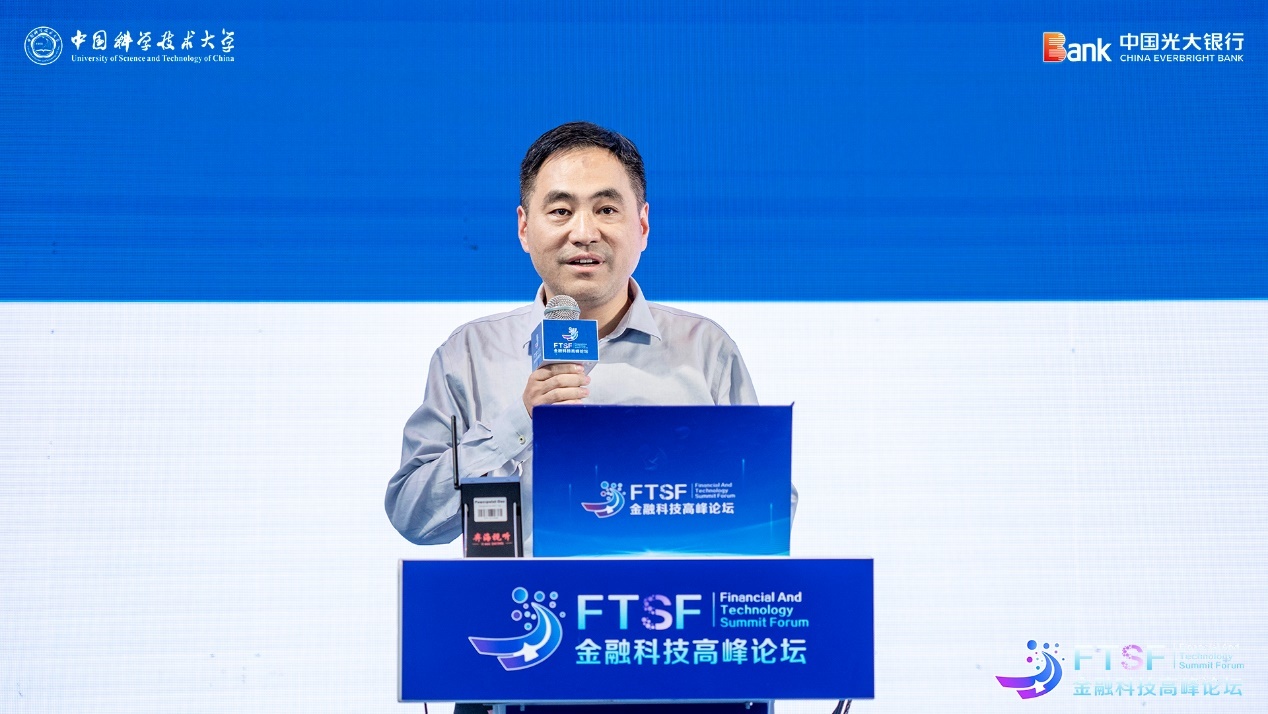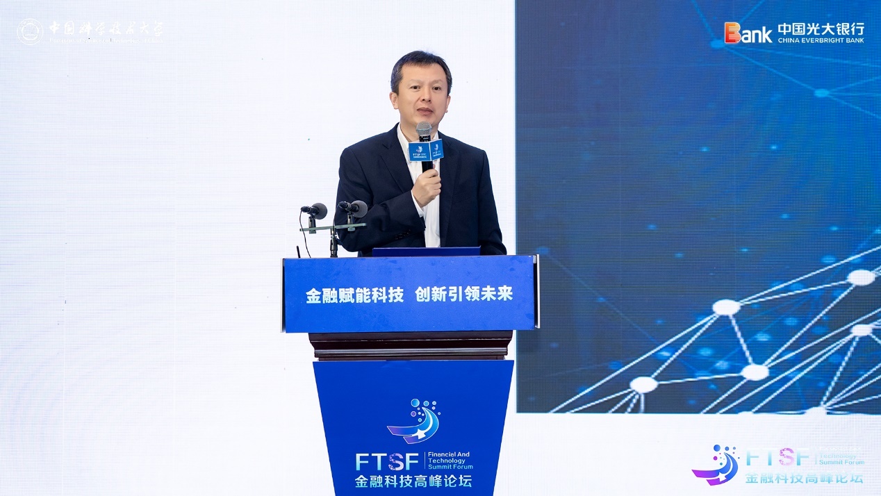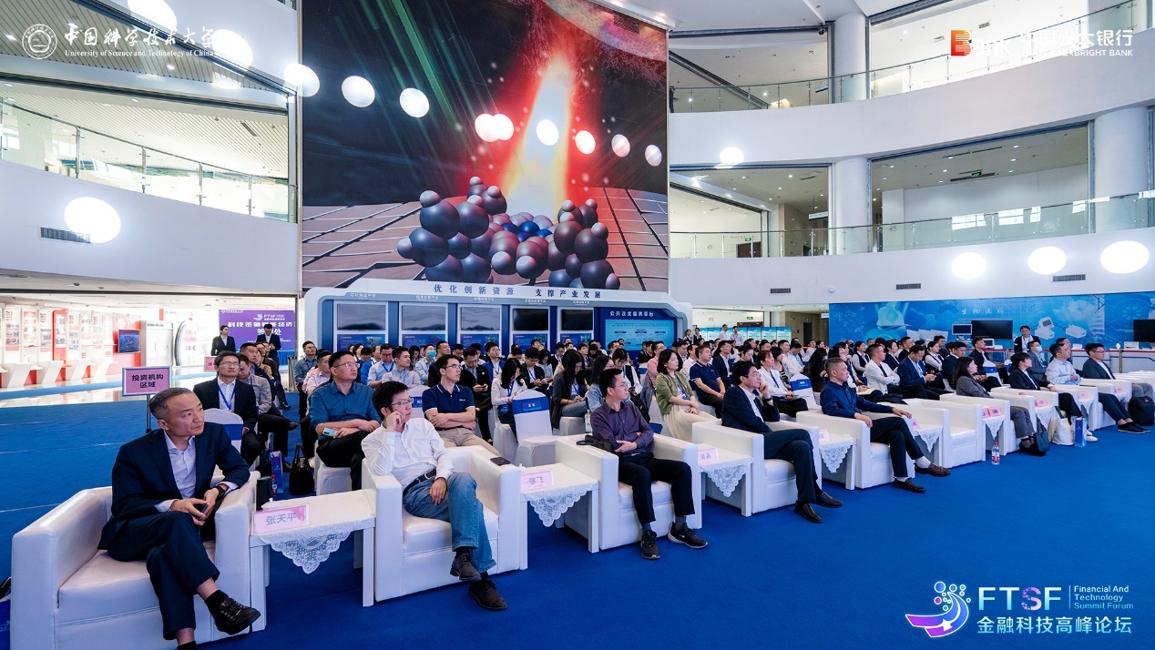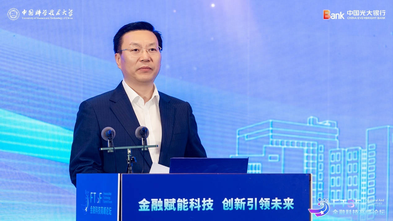 10月26日,中国科大先研院—光大银行首届金融科技高峰论坛在先研院未来中心隆重举行。中国光大银行党委委员、执行董事、副行长曲亮,中国科学技术大学党委常委、副校长吴枫出席会议并致辞。中国人民银行安徽分行、安徽省地方金融监管局,合肥市发改委、科技局、经信局、地方金融监管局以及宿州、蚌埠、铜陵、宣城、肥西等市县相关部门,中科大资产经营有限责任公司、合肥工业大学智能制造技术研究院、合肥综合性国家科学中心人工智能研究院、中国科大国际金融研究院、合肥创新院、科大硅谷服务平台公司等相关单位,中国光大银行各职能部门,兴富投资、合肥市产业投资控股有限公司等投资机构及先研院学生代表等300余人参加了活动。中国工程院院士柴天佑,中央党校(国家行政学院)经济学教授董艳玲,中国科学技术大学管理学院、科技商学院执行院长叶强教授受邀作主旨演讲。