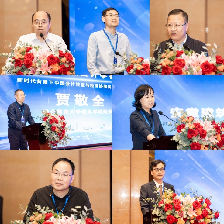 在主题报告环节,陈德球教授、陈志斌教授、郭雪萌教授、蒋翠清教授分别以《ESG视域下的价值共赢驱动与企业高质量发展》《数字时代智慧会计人才培养》《城市轨道交通客流-价值流理论内涵与应用分析》《生成式AI对会计研究范式的影响》为题作学术报告。何贤杰教授、翟胜宝教授主持主题报告环节,并进行了精彩点评。